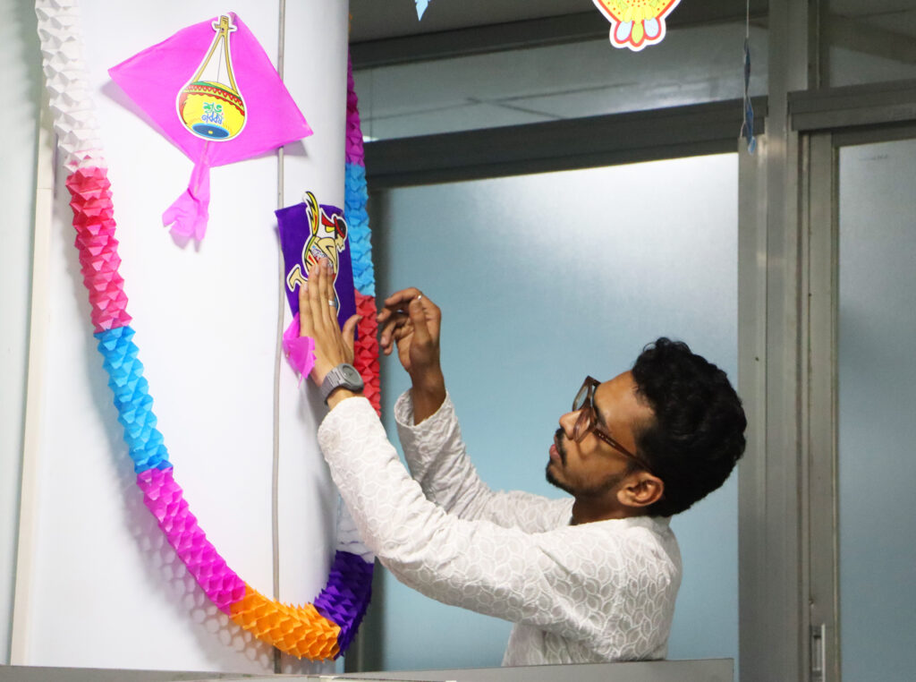 The office was beautifully decorated with colorful elements inspired by Bengali heritage, creating a lively and festive atmosphere. Employees embraced the occasion by wearing traditional attire, adding to the visual charm and cultural richness of the celebration.