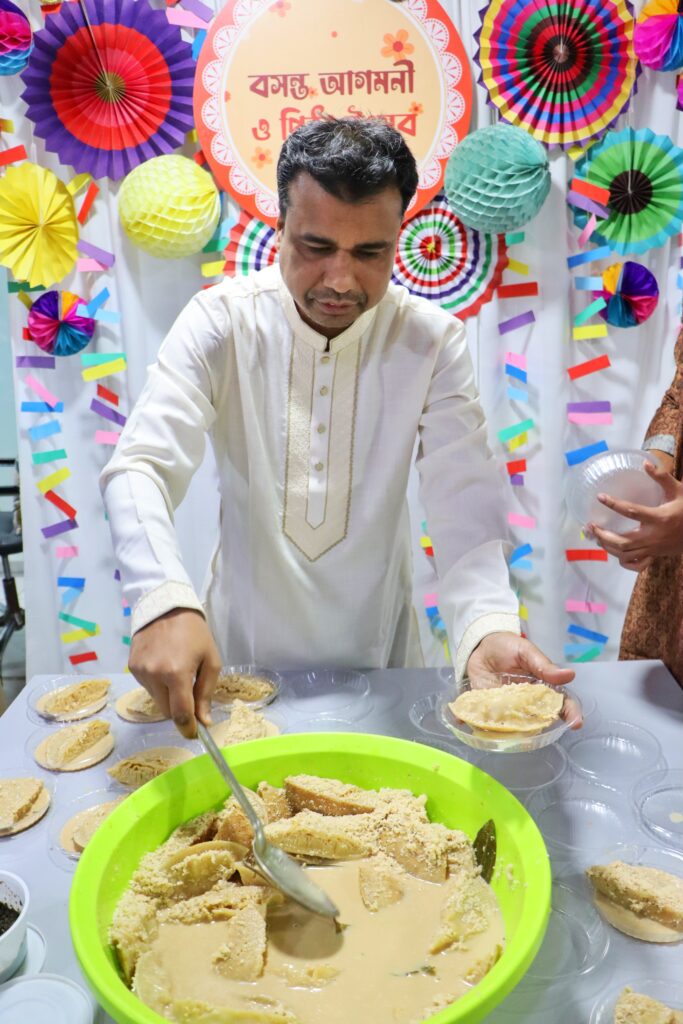 The celebration featured an extensive spread of traditional Bangladeshi pithas, delighting everyone present. Varieties such as Vapa Pitha, Chitoi Pitha, Chicken Puli, Mug Pakon, Semai Pitha, Malpoa, Dudh Chitoi, Pati Shapta, Jhal Pitha, and Panir Puli showcased the richness of Bangladesh’s culinary heritage. Prepared with authentic recipes, the freshly made pithas filled the office with inviting aromas and added a special charm to the occasion.